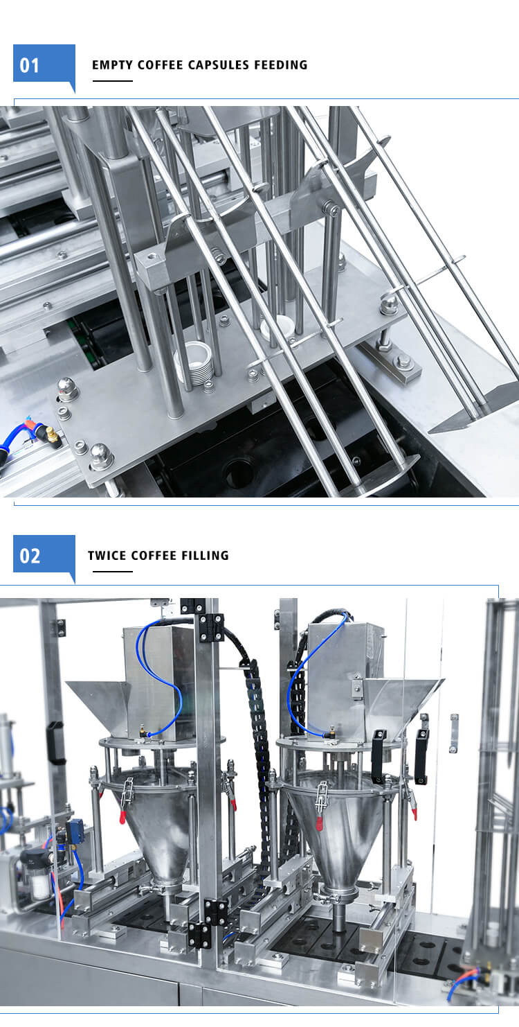 Little Dimensions, higher rate capability, complete capabilities and completely automatic, High precise engine powered by servo motor, PLC control and real-time tracking, Nitrogen system: flush capsule, No cup no filling without a sealing (continues generation no pause)We have empty coffee capsules, filter, and lid, coffee capsule filling sealing machine for K-CUP, Nespresso, Lavazza, Dolce Gusto, etc.