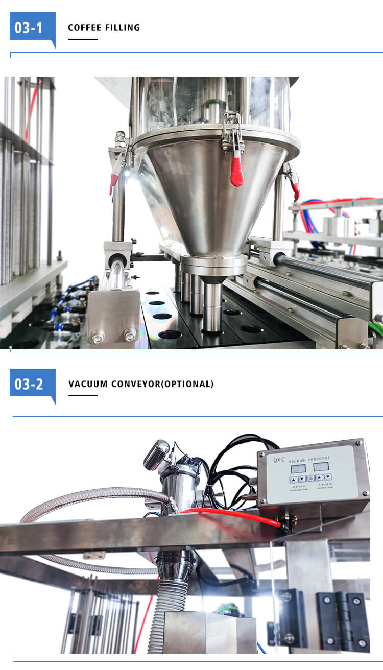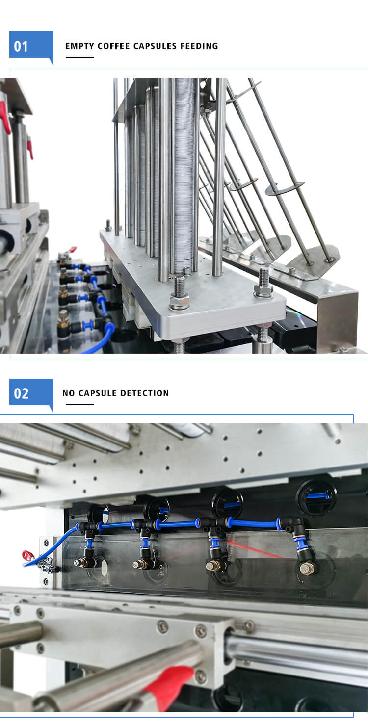 Little Dimensions, higher rate capability, complete capabilities and completely automatic, High precise engine powered by servo motor, PLC control and real-time tracking, Nitrogen system: flush capsule, No cup no filling without a sealing (continues generation no pause)We have empty coffee capsules, filter, and lid, coffee capsule filling sealing machine for K-CUP, Nespresso, Lavazza, Dolce Gusto, etc.